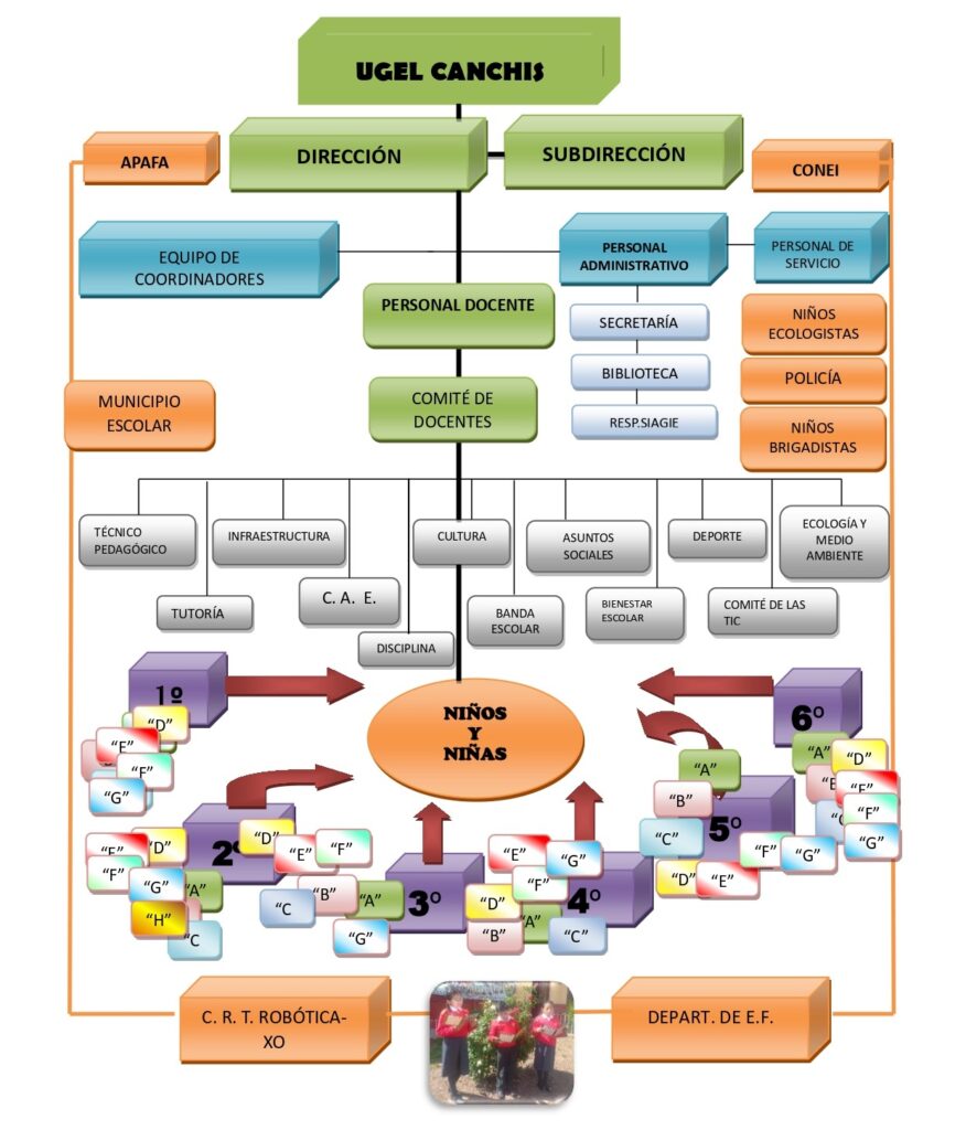 El organigrama de nuestra escuela representa nuestra estructura jerárquica y organizativa, mostrando las relaciones entre los diferentes roles y departamentos. Comienza con la dirección general, encabezada por la persona a cargo, y se despliega a través de subdirectores, coordinadores y jefes de departamento. Los docentes y el personal de apoyo se agrupan según sus áreas de especialización, como materias académicas o servicios administrativos. Este esquema facilita nuestra comunicación, delegación de tareas y toma de decisiones, contribuyendo al eficiente funcionamiento de la escuela y a la calidad de la educación que brindamos.